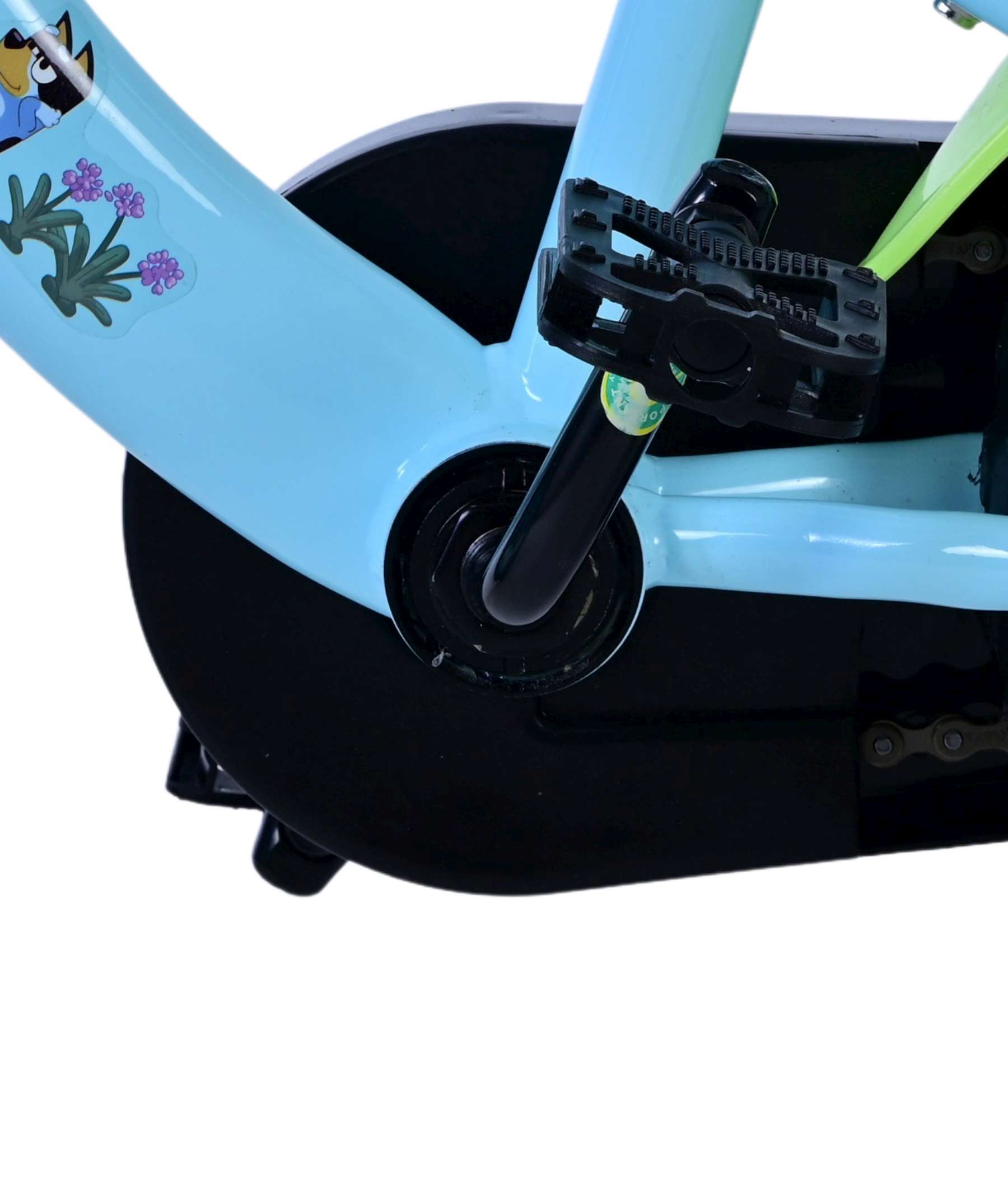 De Volare 12 inch Bluey kinderfiets is speciaal ontworpen voor jonge fietsers die hun eerste fietservaringen willen beleven in echte Bluey-stijl. Het vrolijke lichtblauwe frame in combinatie met het opvallende voorplaatje met Bluey-afbeelding zorgt voor een herkenbare en speelse uitstraling.