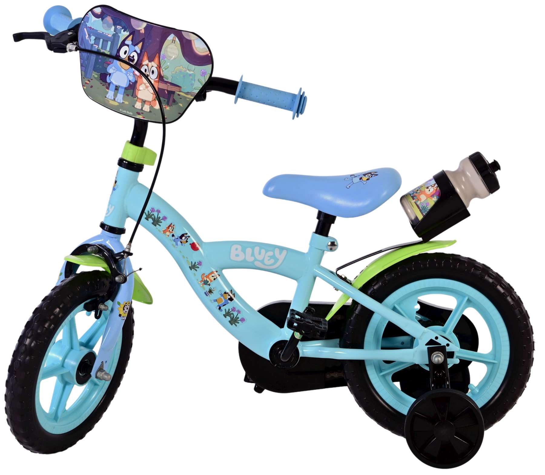 Voor extra stabiliteit tijdens het leren fietsen is de Volare Bluey fiets voorzien van afneembare zijwielen, die later eenvoudig verwijderd kunnen worden wanneer het kind zelfstandig kan fietsen. Het meegeleverde drinkflesje maakt de fiets compleet en is perfect voor onderweg of tijdens het buitenspelen.