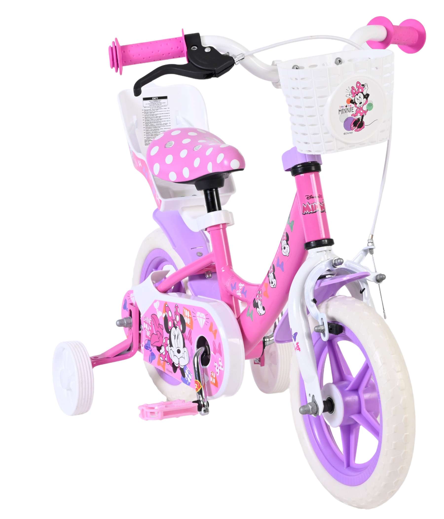 De Volare 12 inch Disney Minnie kinderfiets combineert veiligheid, comfort en een speels design en is ideaal voor kinderen die hun eerste fietservaringen willen beleven met hun favoriete Disney-karakter.