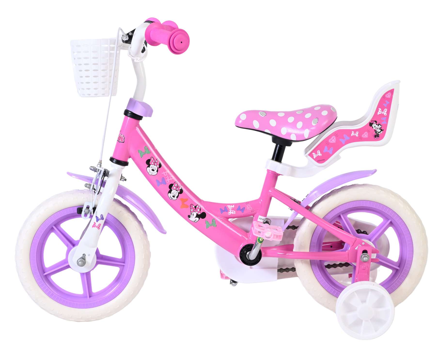 Voor extra stabiliteit tijdens het leren fietsen is de fiets uitgerust met afneembare zijwielen. Daarnaast beschikt de fiets over een mandje aan de voorkant voor kleine spulletjes en een poppenzitje aan de achterzijde, zodat favoriete poppen of knuffels altijd mee kunnen op avontuur.