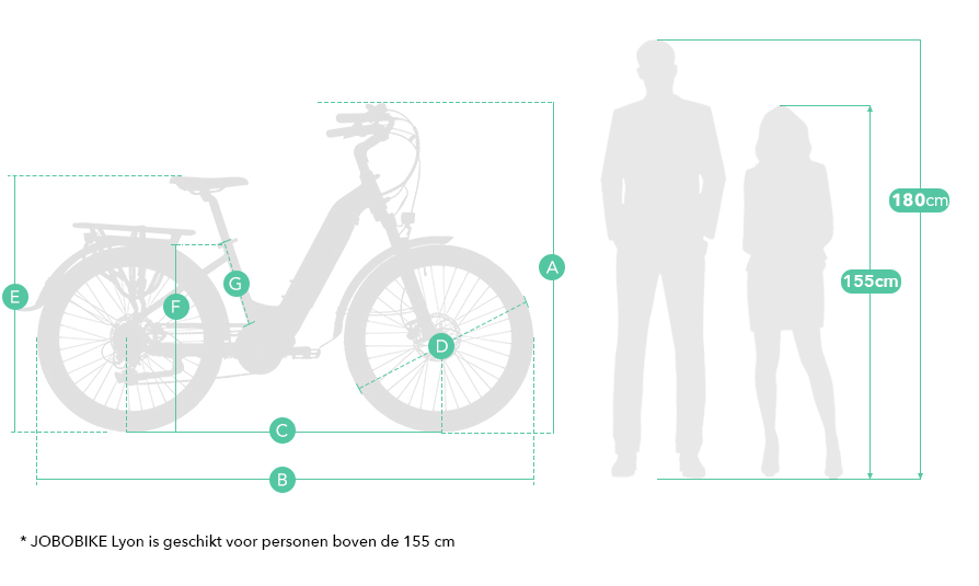 JOBOBIKE Lyon heeft een step-through frame ontwerp, vriendelijk voor senioren. Ze kunnen gemakkelijk door het frame en hoeven zich geen zorgen te maken over het hoge frame, waardoor je je ontspannen en comfortabel voelt tijdens de rit.