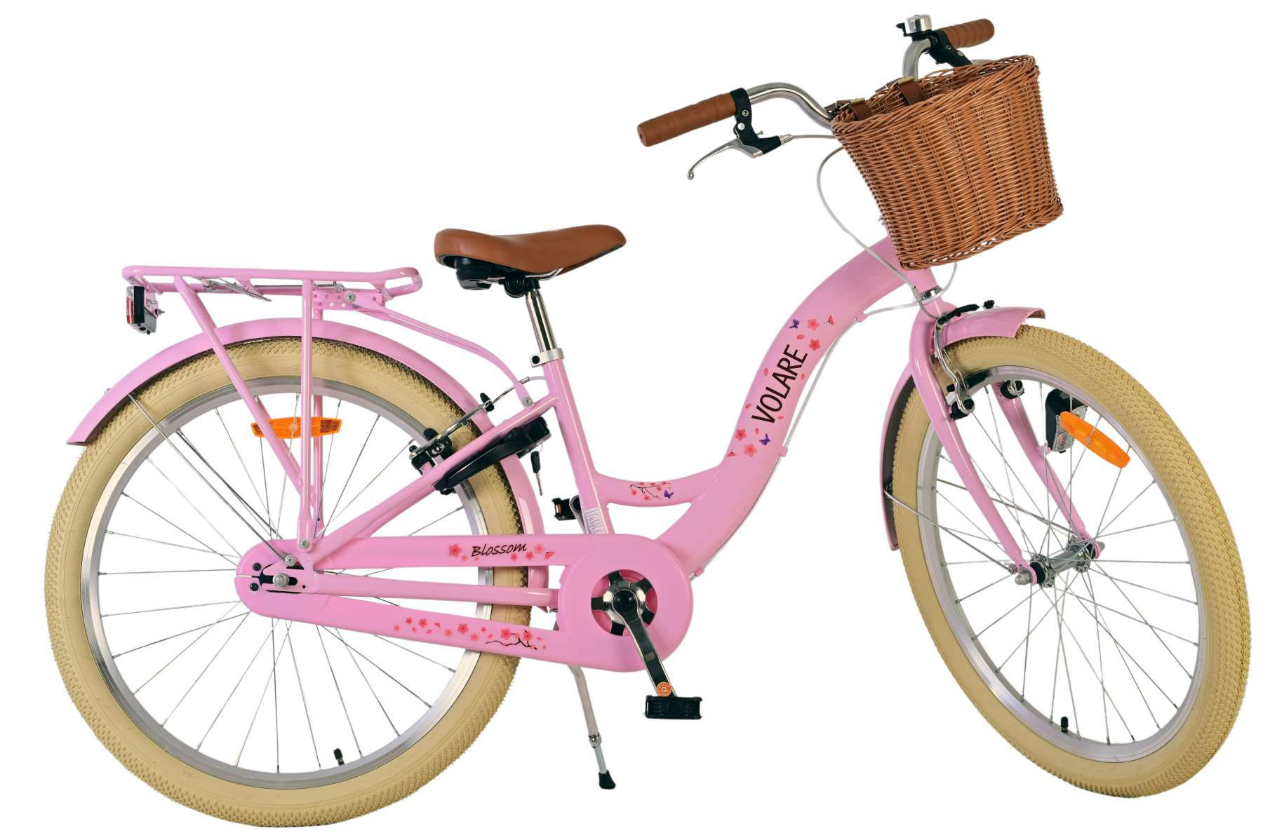 Deze prachtige 24 inch fiets met het vrolijke Blossom-bloemenpatroon biedt volop gemak en veiligheid. Het opvallende design maakt de fiets niet alleen een praktische keuze, maar ook een stijlvolle blikvanger. De fiets is voorzien van twee handremmen (géén terugtraprem), zodat je altijd snel en veilig kunt stoppen.